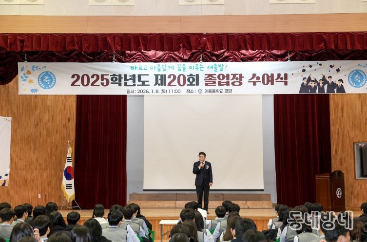 동네방네 김형규 기자 | 충남 계룡시는 지난 8일 계룡중학교(교장 이기수)에서 개최하는 제20회 졸업식에 참석하여 졸업생들의 새로운 출발을 축하했다.