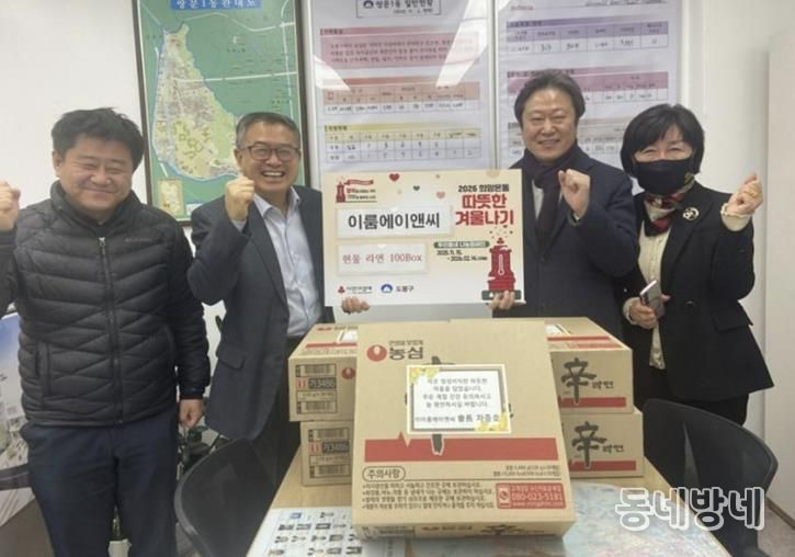 동네방네 김형규 기자 | 서울 도봉구 쌍문1동은 지난해 12월 17일 ㈜이룸에이앤씨로부터 라면 100박스(225만 원 상당)를 전달받았다. 라면 100박스는 현재 지역 내 취약계층 100여 가구에 순차적으로 전달되고 있다.