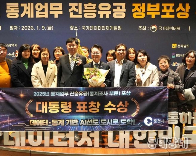동네방네 김형규 기자 | 춘천시가 9일 2025년 통계업무 유공을 인정받아 강원특별자치도 18개 시군 중 최초로 대통령 표창을 수상했다.