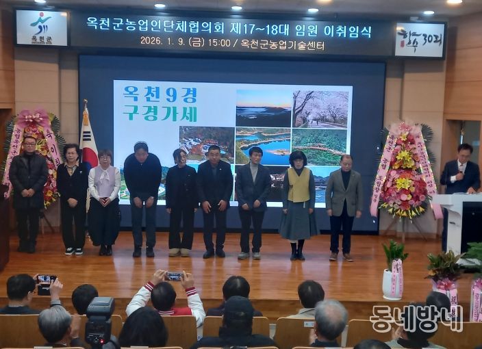 동네방네 김형규 기자 | 옥천군농업인단체협의회(회장 황동연)가 지난 9일 농업기술센터 농업인교육관에서 회원 및 내빈 100여명이 참여한 가운데 제17‧18대 회장 이‧취임식을 개최했다.