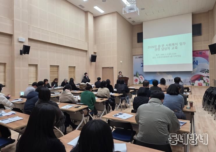동네방네 김형규 기자 | 고창군이 지난 9일 고창군보훈회관 1층 다목적실에서 읍·면 사회복지 업무 담당자 30여 명을 대상으로 2026년 사회복지사업 추진방향 교육과 공유의 시간을 가졌다.