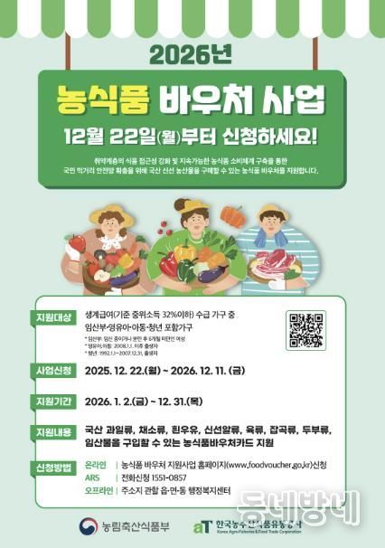 동네방네 김형규 기자 | 진도군은 취약계층의 식생활 안정을 도모하고 지역 농산물의 소비를 촉진하기 위해 ‘2026년 농식품 바우처 사업’을 추진한다.