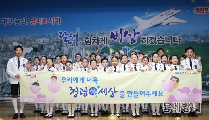 행사는 대구교대부설초등학교 꽃사슴 중창단의 식전공연으로 시작됐으며, 이어 이태훈 달서구청장과 함께 달서구 출범 연도인 1988년에 태어난 남녀 직원 2명, 그리고 새내기 공무원이 대표로 선포문을 낭독해 참석자들의 이목을 집중시켰다.