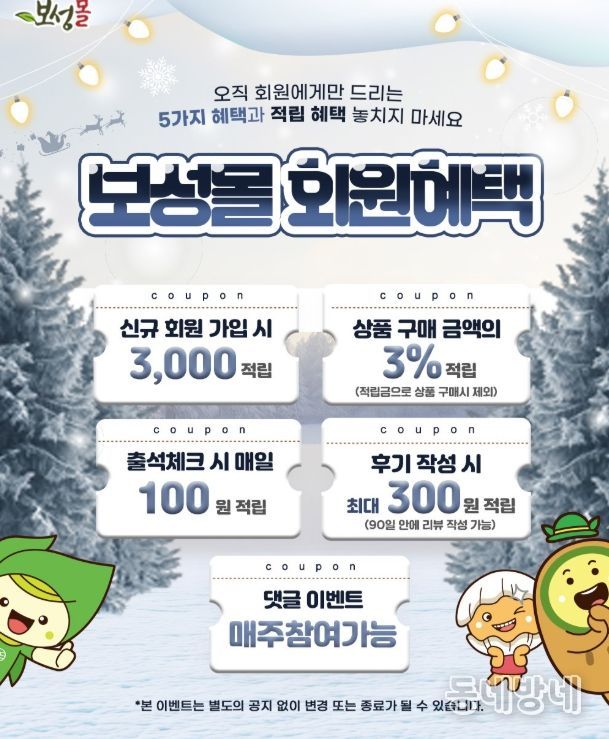 . 명절 시즌 최대 20% 할인 행사를 비롯해 ▲신규 회원 가입 시 3,000포인트 지급, ▲구매 금액의 3% 적립, ▲출석 체크 포인트 지급, ▲후기 작성 포인트 지급 등 고객 친화적인 혜택과 이벤트를 통해 충성 고객층을 확보하고 있다.