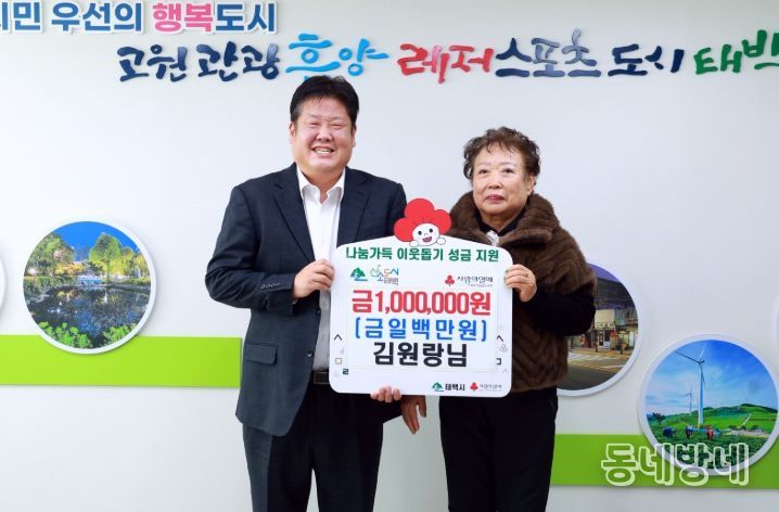 동네방네 김형규 기자 | 태백시는 김원랑 님이 지난 13일 ‘희망2026 나눔캠페인’ 성금 100만 원을 기부했다고 밝혔다.