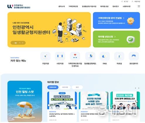 동네방네 김형규 기자 | (재)인천여성가족재단 인천일생활균형지원센터는 일생활균형지원사업의 본격적인 추진을 위하여 센터 홈페이지를 지난 12월에 구축·완료하고, 공식 오픈했다.