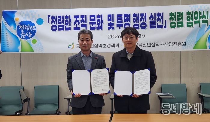 군 관계자는 “올해는 안전성 검사 기반의 유통 체계가 본격 시행되는 중요한 해인 만큼 진흥원과의 유기적인 협력이 무엇보다 중요하다”며 “오늘 협약한 청렴 정신을 바탕으로 금산인삼 산업의 투명성을 높일 수 있는 정책을 추진하겠다”고 말했다.