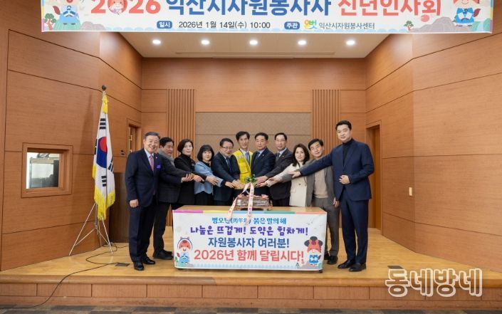 시는 14일 송학동 행정복지센터 대회의실에서 '2026년도 익산시 자원봉사자 신년인사회'를 개최하고, 자원봉사자들과 함께 새해 자원봉사 실천 의지를 다졌다.