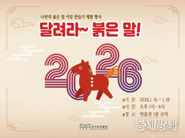 동네방네 김형규 기자 | 경기문화재단 경기도박물관(관장직무대행 박본수)은 병오년 새해를 맞아 관람객을 위한 체험형 교육행사 〈달려라~ 붉은 말!〉을 1월 16일부터 18일까지 3일간 박물관 로비에서 운영한다.