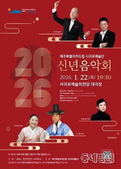 동네방네 김형규 기자 | 서귀포시는 1월 22일 19시 30분 서귀포예술의전당 대극장에서 ‘제주특별자치도립 서귀포예술단 2026 신년음악회’를 개최한다.