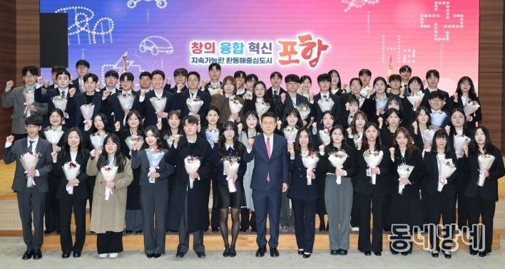 동네방네 김형규 기자 | 포항시는 16일 시청 대회의실에서 공직 생활의 첫걸음을 시작한 신규 공무원 56명을 대상으로 임용식을 개최했다.