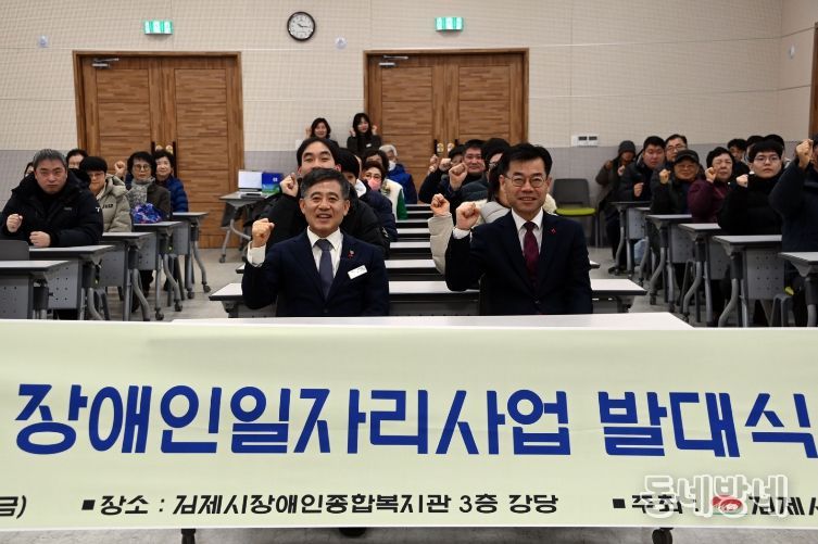 동네방네 김형규 기자 | 김제시는 김제시장애인종합복지관(관장 박승택)이 16일 복지관 3층 강당에서 장애인일자리사업 참여자 75명 등이 참석한 가운데 2026년 장애인일자리사업 발대식 및 참여자 교육을 개최했다고 밝혔다.