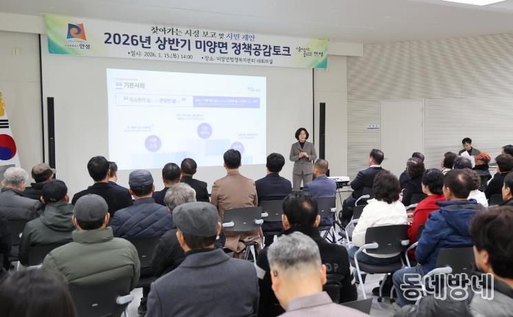 동네방네 김형규 기자 | 안성시 미양면은 지난 1월 15일, 미양면행정복지센터 대회의실에서 주민 120여 명이 참석한 가운데 ‘2026년 상반기 미양면 정책공감토크’를 성황리에 개최했다.