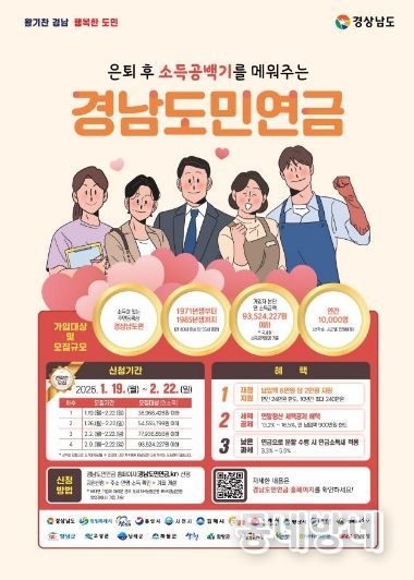 동네방네 김형규 기자 | 함양군은 군민의 은퇴(60세) 이후 공적연금 수령 전(65세)까지의 소득 공백기를 대비하고 안정적인 노후 준비를 지원하기 위해 '2026년 경남도민연금 지원사업'을 추진하고 가입자를 모집한다고 밝혔다.