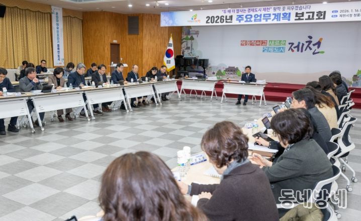 동네방네 김형규 기자 | 제천시는 지난 16일 시청 청풍호실에서 전 부서가 참여하는 ‘2026년 주요업무계획 보고회’를 개최하고, 새해 시정 운영 방향과 핵심사업 전반을 점검했다.