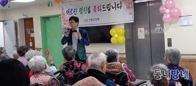 실제 이날 신광요양원에서 어르신 정서 지원을 위해 '찾아가서 함께하는 효사랑 잔치'를 열고, 율동과 웃음치료, 건강 박수 배우기 등을 진행했다.