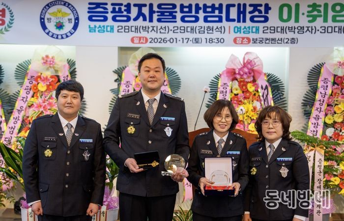 이어 제29대 김현석(34) 남성대장과 제30대 연명자(51) 여성대장이 새롭게 취임하며 자율방범대의 새로운 출발을 알렸다.