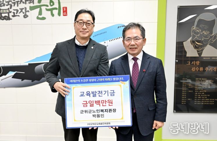 동네방네 김형규 기자 | 지난 15일 군위군노인복지관 박용민 관장과 군위군 궁도스포츠클럽 회원일동은 군위군청을 방문하여 지역의 교육 발전과 인재양성을 위해 써달라며 교육발전기금 200만원을 기탁했다.
