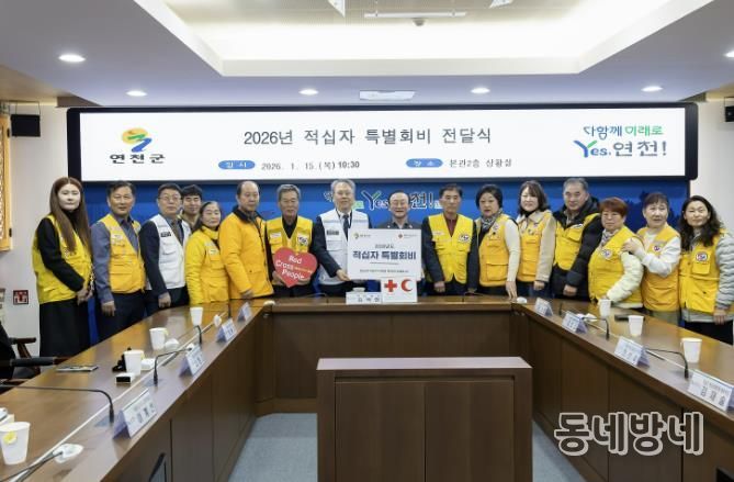동네방네 김형규 기자 | 연천군은 지난 15일 군청 상황실에서 연천군수, 대한적십자사 경기도지사 우광호 사무처장, 연천군협의회 금가현 회장 및 회원 등이 참석한 가운데 2026년 적십자 특별회비 전달식을 개최했다.