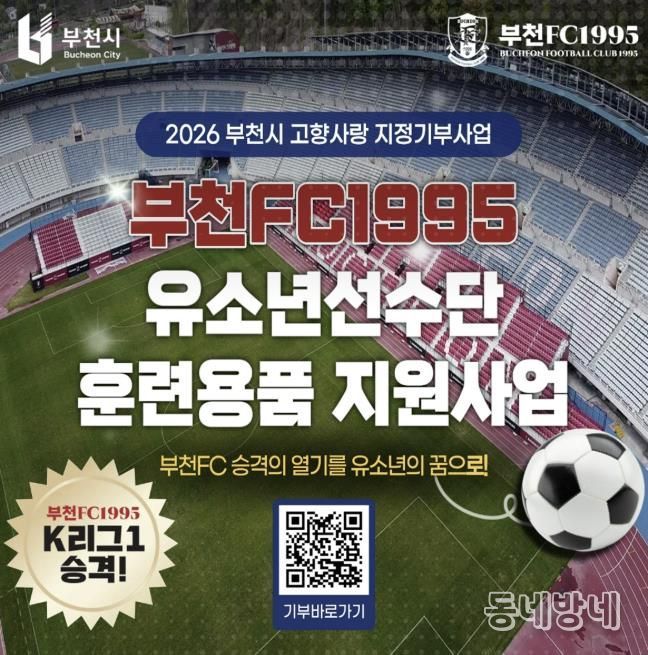 ‘부천FC1995 유소년 선수단 훈련용품 지원’은 미래의 국가대표를 꿈꾸는 유소년 선수들에게 유니폼, 축구화, 축구공 등 필수 훈련용품을 지원하는 사업이다. 시는 이번 지원을 통해 유소년 선수들의 훈련 환경을 개선하고, 지역 스포츠 저변 확대와 부천FC 팬층 형성에도 도움이 될 것으로 보고 있다.