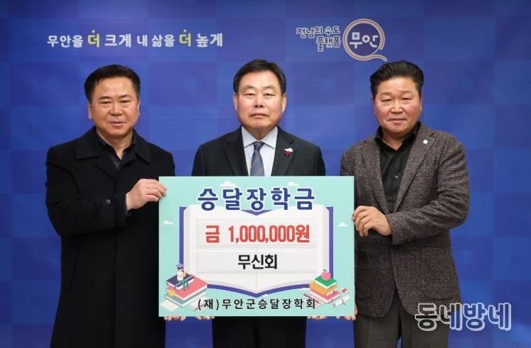 동네방네 김형규 기자 | 무안군은 지난 1월 19일 무신회 박석현 회장이 지역 인재 육성을 지원하기 위해 (재)무안군승달장학회에 장학금 100만 원을 기탁했다고 밝혔다.