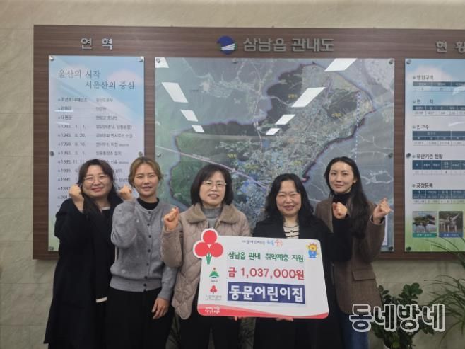 동네방네 김형규 기자 | 울주군 삼남읍에 소재한 동문어린이집이 19일 삼남읍 행정복지센터에 소외된 이웃을 돕기 위한 성금 103만7천원을 전달했다.