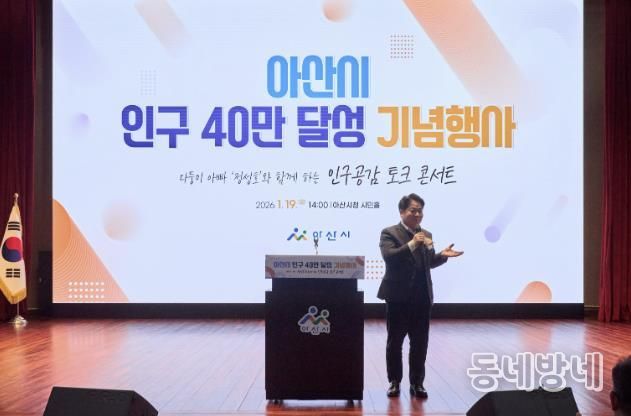 동네방네 김형규 기자 | 아산시는 지난 19일 아산시청 시민홀에서 인구 40만을 넘어 50만 자족도시로 나아가기 위한 '아산시 인구 40만 달성 기념행사'를 성황리에 마쳤다.