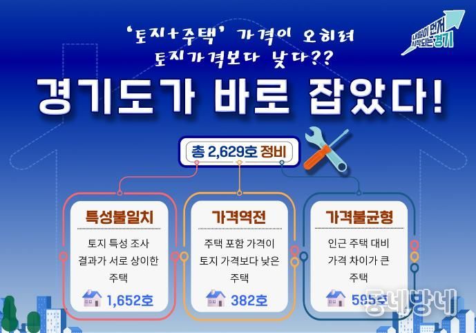 정비 대상은 ▲토지 특성 조사 결과가 서로 달랐던 ‘특성불일치’ 주택 1,652호 ▲토지가격보다 주택 포함 가격이 더 낮게 산정된 ‘가격역전’ 주택 382호 ▲인근 주택과 비교해 가격 격차가 컸던 ‘가격불균형’ 주택 595호 등이다.