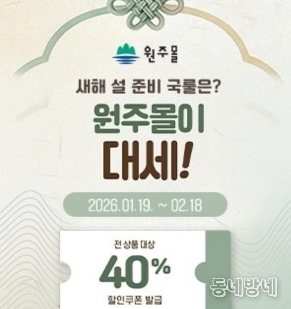동네방네 김형규 기자 | 원주시 공식 인터넷 쇼핑몰 ‘원주몰’이 설 명절을 맞아 다음 달 18일까지 ‘2026 원주몰 설맞이 기획전’을 진행한다.
