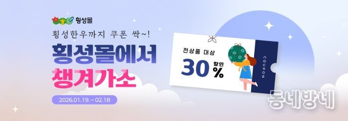 동네방네 김형규 기자 | 횡성군은 설 명절을 앞두고 지역 중소기업 및 소상공인의 판로 지원과 민생 경제 활성화를 위해 ‘2026년 횡성몰 설 명절 특별 기획전’을 개최한다고 밝혔다.