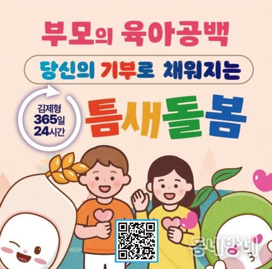한편, 시는 “김제형 365일 24시간 아이돌봄 센터 운영”을 위해 지난해 8월부터 7억을 목표로 모금을 시작하여 현재 목표액의 21%인 1억 5천만원을 모금했고 올해 6월 말까지 1년 운영비인 3억 5천만원 모금 달성을 위해 출향인, 관내 유관기관, 기업체 임직원 등을 대상으로 하는 방문 홍보와 김제시민의 관심과 협조를 이끌어내기 위한 읍면동 순회 홍보를 추진 중에 있다.