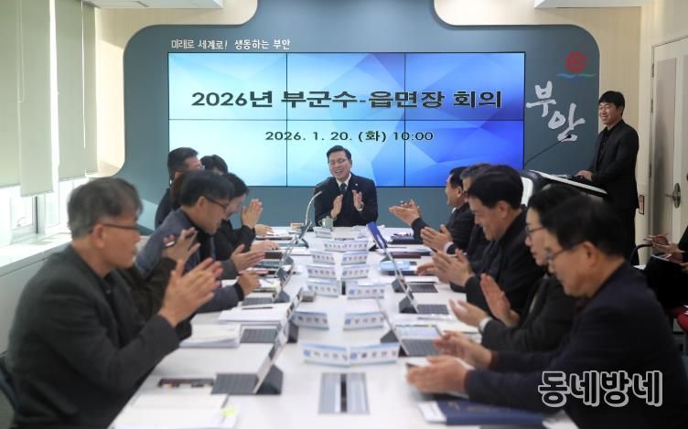동네방네 김형규 기자 | 부안군은 20일 군청 3층 중회의실에서 정화영 부군수 주재로 2026년 부군수-읍·면장 회의를 개최하고 2025년 주요 성과와 2026년 군정 운영방향을 공유하며 읍·면 현안에 대한 사전 점검에 나섰다고 밝혔다.