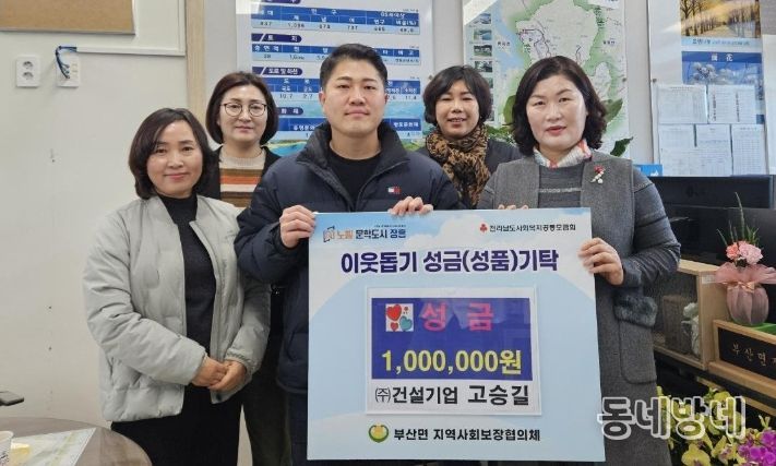 동네방네 김형규 기자 | 고승길 ㈜건설기업 대표는 최근 부산면지역사회보장협의체(공동위원장 박진영·이경환)에 이웃돕기 성금 100만원을 기탁했다.