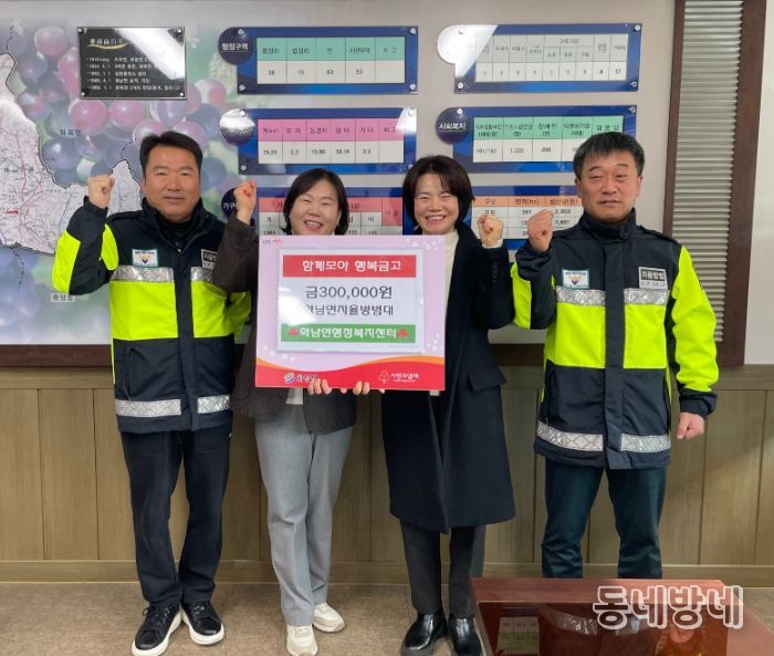 동네방네 김형규 기자 | 영천시 화남면 자율방범대는 20일 병오년 새해를 맞이해, 이웃사랑을 실천하기 위해 화남면에 성금 30만원을 기탁했다.