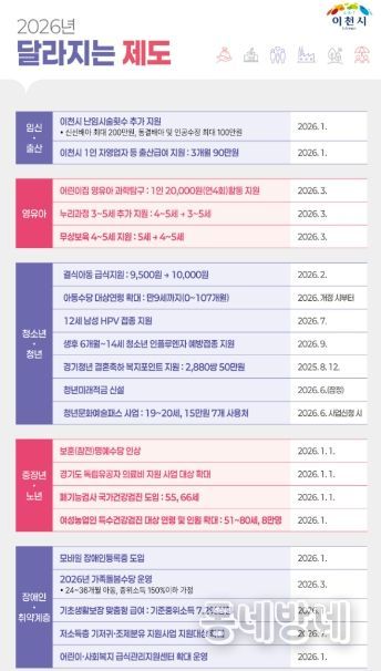 동네방네 김형규 기자 | 이천시가 2026년 새해를 맞아 시민 생활과 밀접한 달라지는 제도를 발표했다.