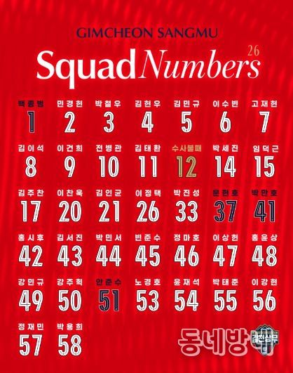동네방네 김형규 기자 | 김천상무가 2026시즌 프로선수단 배번을 공개했다.