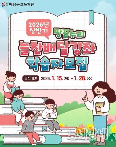 동네방네 김형규 기자 | 해남군교육재단은 군민 평생학습 환경 조성을 위해 상반기 땅끝누리 늘찬배달강좌 학습자를 모집한다.