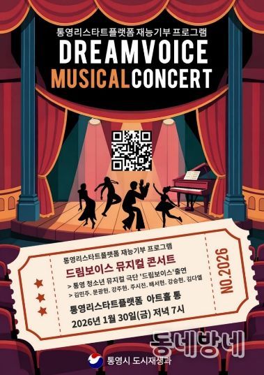 동네방네 김형규 기자 | 통영시는 오는 30일 저녁 7시 통영리스타트플랫폼 1층 아트홀 통에서 통영리스타트플랫폼 재능기부 프로그램 ‘드림보이스 뮤지컬 콘서트’를 개최한다.