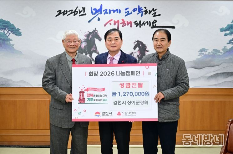 동네방네 김형규 기자 | 김천시는 1월 19일 상이군경회 김천시지회(회장 선종두)로부터 희망2026나눔캠페인 성금 127만 원을 기탁받았다고 밝혔다.