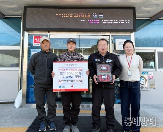 동네방네 김형규 기자 | 청송군 안덕면 소재 우와한 농원 허안열 대표가 지역 내 어려운 이웃들을 위해 지난 20일, 직접 재배한 싱싱한 딸기 500g 30팩을 안덕면에 전달했다.
