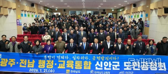 동네방네 김형규 기자 | 전라남도는 21일 광주·전남 행정통합을 주제로 신안군과 목포시에서 도민공청회를 잇따라 열고 서남권 지역별 특성과 현안과제를 중심으로 도민들과 소통하는 시간을 가졌다.