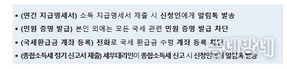 이 밖에도 명의도용으로 인한 피해가 예상되는 국세행정 업무에 대해 다음과 같은 서비스를 시행한다.