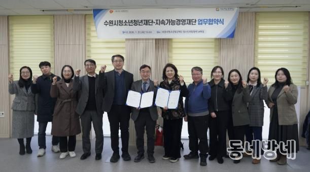 동네방네 김형규 기자 | 수원시청소년청년재단과 지속가능경영재단은 1월 22일 고립‧은둔 청소년‧청년 및 사회적 취약 청소년‧청년 지원을 위한 업무협약(MOU)을 체결했다.