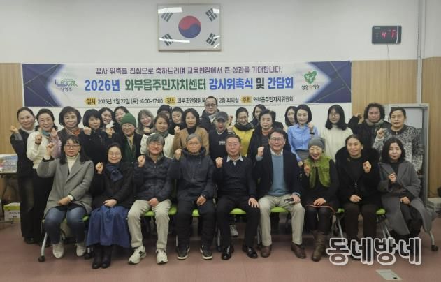 동네방네 김형규 기자 | 남양주시는 22일 와부읍 주민자치위원회가 와부조안행정복지센터 2층 회의실에서 ‘2026년 와부읍 주민자치센터 강사위촉식 및 간담회’를 열고, 주민자치센터 프로그램을 이끌 강사들과 공식적인 첫 만남의 자리를 가졌다고 밝혔다.