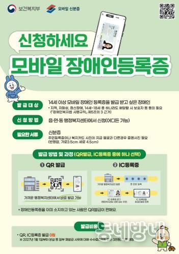 IC칩이 탑재된 신규 장애인등록증 소지자는 ‘대한민국 모바일 신분증’ 애플리케이션을 통해 스마트폰 태깅 방식으로 간편하게 등록할 수 있으나, 기존 실물 장애인등록증 소지자는 가까운 읍·면·동 행정복지센터를 방문해 정보인식부호(QR코드) 인증 절차를 거쳐야 발급받을 수 있다.