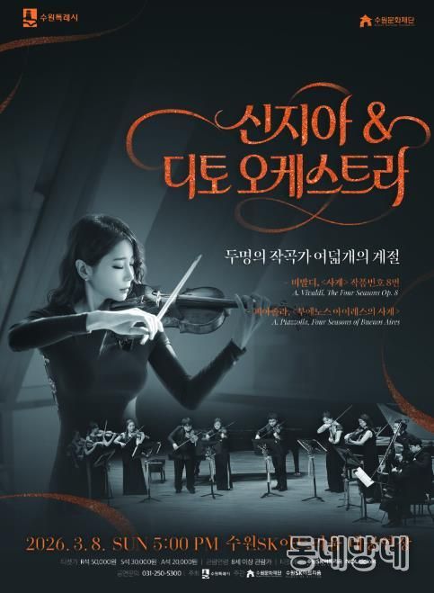 수원문화재단 관계자는 “이번 공연은 유럽의 바로크와 남미의 탱고가 표현하는 사계절을 한자리에서 경험할 수 있는 기회다”며 “계절의 변화를 섬세하게 그려내는 연주에 시민 여러분의 많은 관심을 바란다”고 전했다.