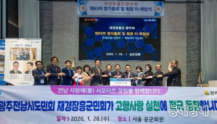 동네방네 김형규 기자 | 전라남도는 지난 28일 서울에서 열린 재경장흥군향우회 정기총회와 회장 이·취임식에 참석해 고향사랑 실천 도정설명회를 개최, 고향사랑 실천 확산을 위한 교류협력을 강화하기로 했다고 밝혔다.