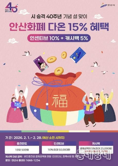동네방네 김형규 기자 | 안산시는 시 승격 40주년을 기념하고 시민들의 설 명절 부담을 덜어주고자 지역화폐 ‘다온’의 소비 혜택을 강화한다고 30일 밝혔다.