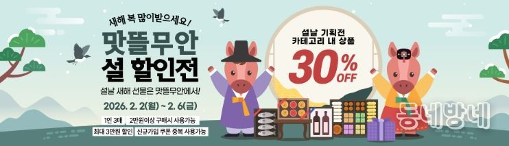 동네방네 김형규 기자 | 무안군은 설 명절을 맞아 지역 농특산물 소비 촉진을 위해 무안군 공식 온라인 농특산물 쇼핑몰 ‘맛뜰무안몰’에서 설 기획전을 운영한다고 밝혔다.