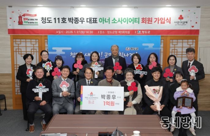동네방네 김형규 기자 | 강산농장 박종우 대표는 지난 27일 청도군청에서 아너 소사이어티 회원 가입식을 가졌다.